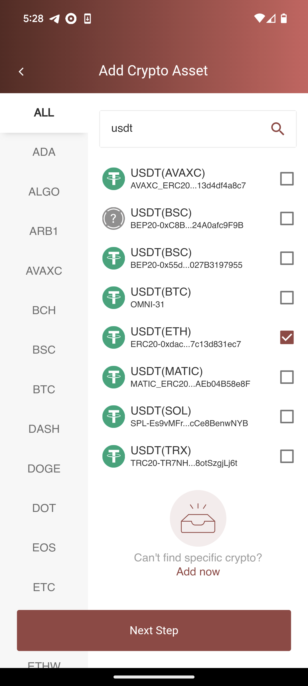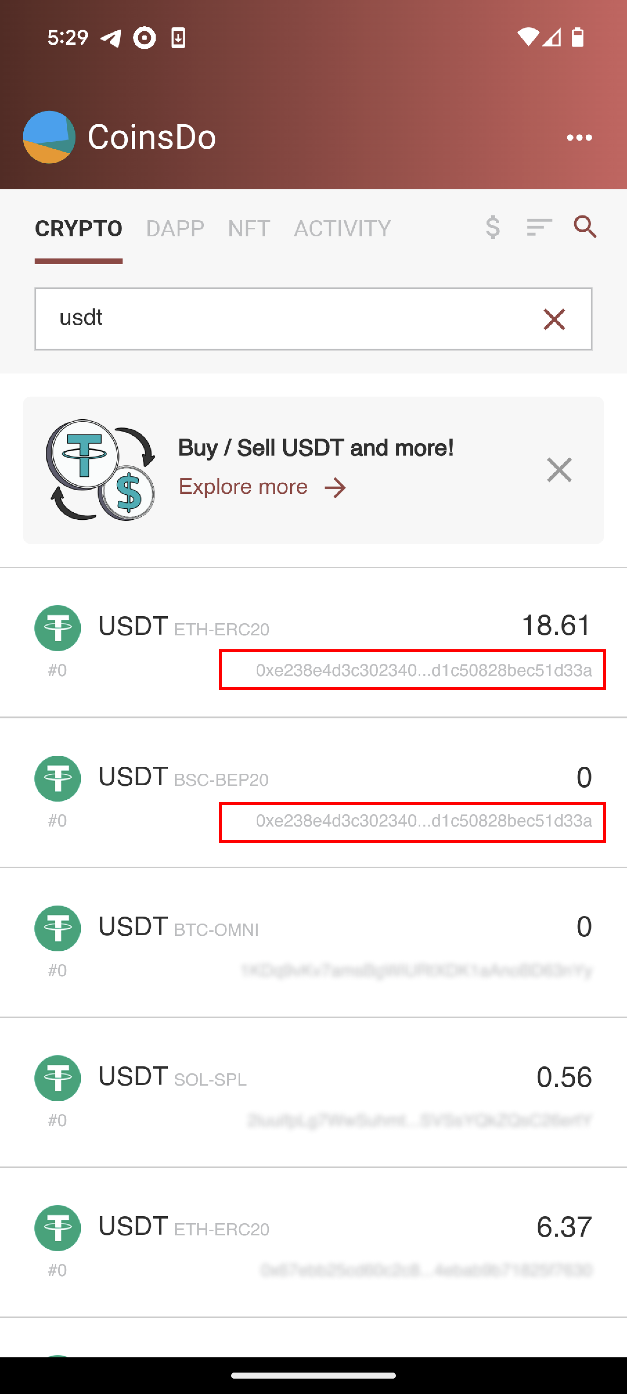 5. Now you should be able to see 2 USDT on different blockchains with the same address.